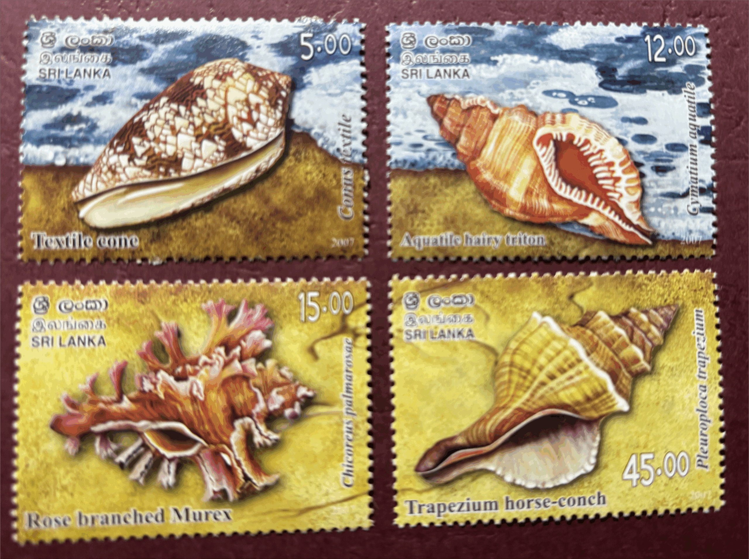 Seashells of Sri Lanka , Stamp set of 4, MNH